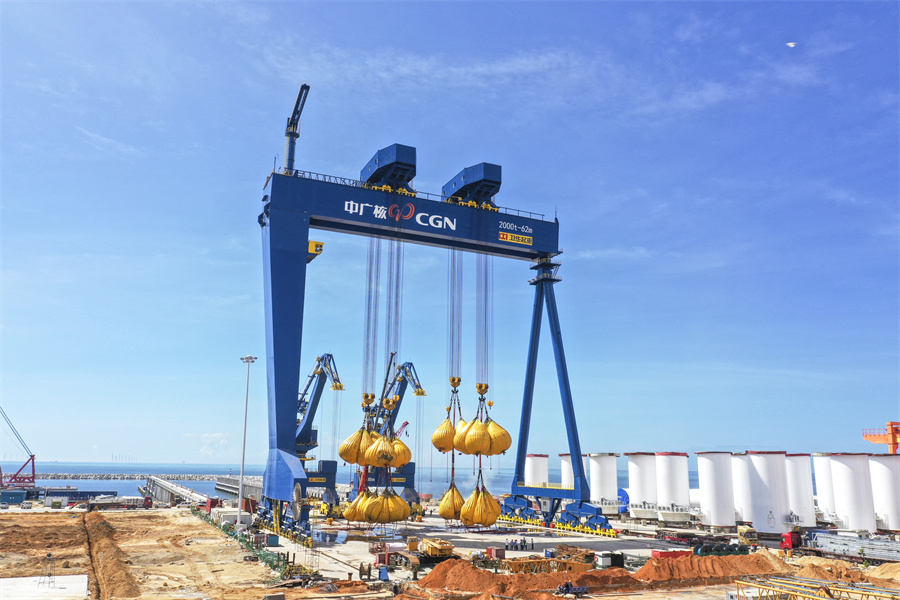 七月的风书写滚烫的诗行——hth·华体2000t门机产品交付国内最大海上风电母港,看hth·华体怀着赤忱热烈的激情深耕海上风电领域市场;