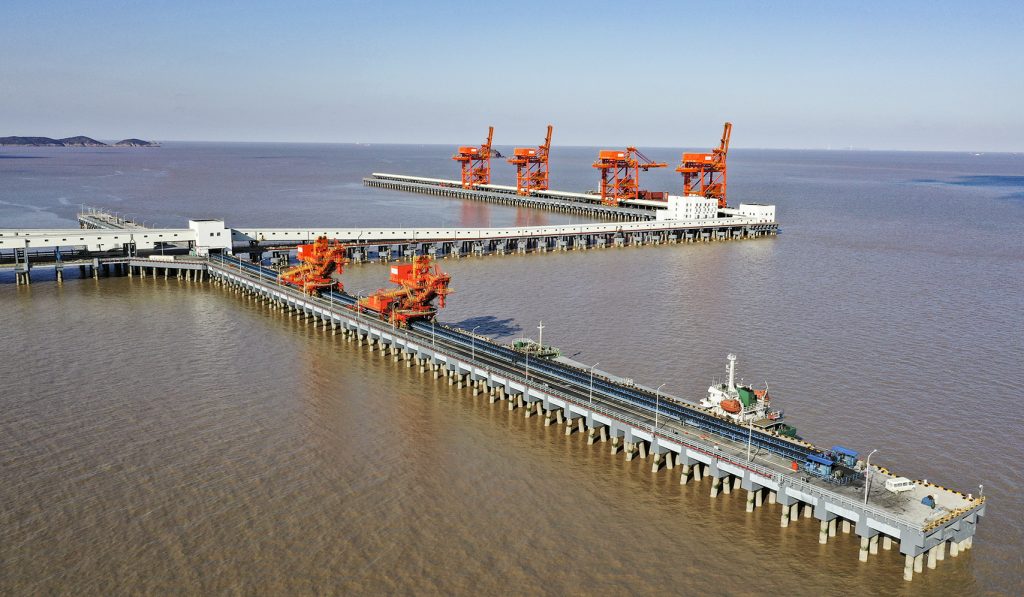 hth·华体承接的浙江石油化工有限公司4000万吨/年炼化一体化基地配套码头工程干散货码头带式输送机及附属设备系统装置项目,包含8条皮带机及其他附属设备系统,其中4条2200mm大带宽带速5m/s,运量7680t/h,采用中部三驱动布置形式,电机功率3x800kw,单机长度950m。